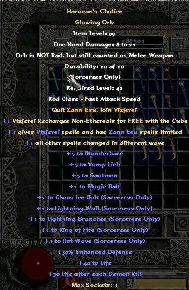 When a Sorcerer holds ‘Globe of the Vizjerei’ or ‘Horazon’s Chalice’ or ‘Foci of the Vizjerei’ in her hand, she would be considered as Quitted her Zann Esu clan and Joined the Vizjerei clan. New Vizjerei Spells would be granted, and some Zann Esu Spells would be limited, other spells would be modified in certain ways.